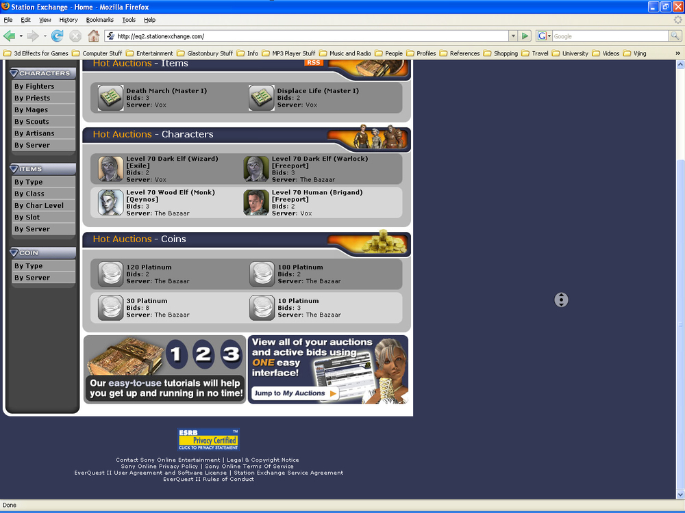 Over the years, players have struck on the idea of selling their virtual characters together with the virtual equipment and virtual money for cold, hard, cash. This practice has become popular, as many players are willing to pay large sums of real money to own and control a high level character in a virtual world without going through the months of arduous training and questing in order to reach those pinnacles of virtual success. People are willing to pay because they want power; they want to feel superior to other players without spending all the time and effort that goes in to achieving it. Some people have actually formed companies which hire staff to play MMORPGs for hours at a time and then sell the acquired characters, assets and virtual money on websites such as e-Bay. Developers of the MMORPGs, however, started to become aware of this practice and Sony was the first company to ban player accounts that were selling virtual goods from the popular MMORPG Everquest through online auction sites. (Kelly, R.V. 2004, p15) Many developers claim that all assets within their game are the intellectual property of their company and therefore cannot be sold on by third parties. This reduced the amount of online sales of virtual goods considerably but there were still some that opposed the companies’ new legislations.