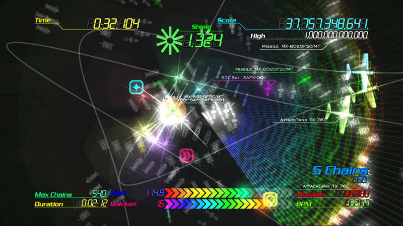 Flying gracefully through cyberspace, the timing of your targeted destruction of the viruses inside K-Project provides a layered beat to the music in a similar fashion to E4. The hypnotic visuals and connection between your own interactions and the musical score make it an experience not dissimilar to watching Tron after drinking a pint of battery acid.