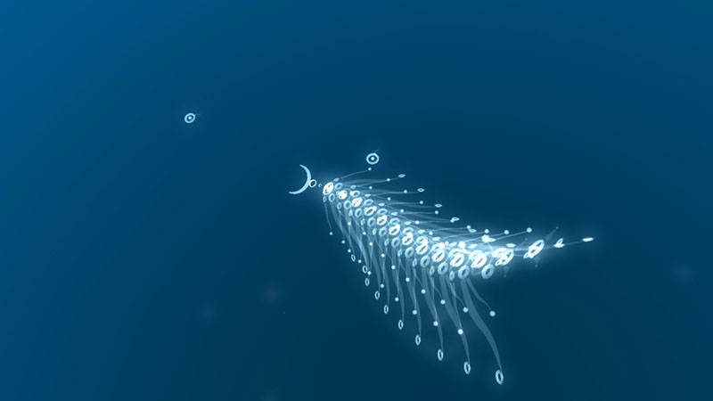 flOw involves guiding a microscopic-like organism around an eerie vacant ocean. Your creature (if we can call it that) can consume smaller organisms and in doing so evolves its structure before diving deeper down in to the ocean to face bigger and more complex creatures. Evolution is a strong theme throughout and is quite similar to Spore’s initial cell stage.