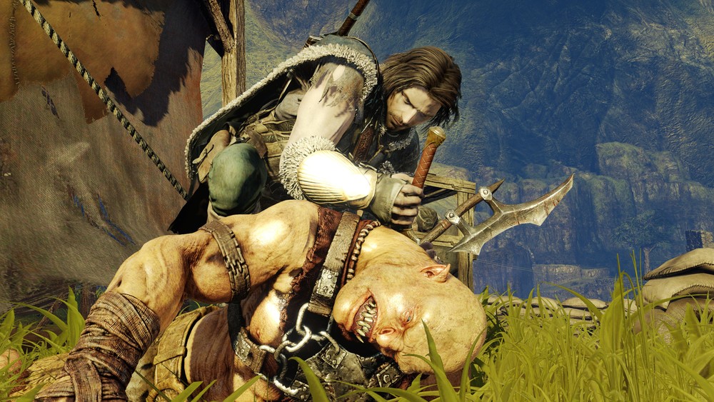 The fight scenes feel dynamic and cathartic, and they manage to recapture the power and style of combat expressed in the films. There is a point near the end of the Fellowship of the Ring film, where Aragorn, after telling Frodo to flee, calmly faces an entire army of marauding Uruk Hai. He draws his sword, grimaces, and then proceeds to maim, decapitate and basically kick orc-ass in the most badass way imaginable, all with the style and grace of an expert swordsman who makes the slaying of orcs look like art. It’s like watching a ballet, except a lot more brutal, with rolling heads and black orc blood. It’s exhilarating, and watching it at the time was the kind of thing I really wanted to experience in a Lord of the Rings game. This, Shadow of Mordor then, has finally managed to achieve that for me. Talion’s sword swings with brutal purpose on the bodies of orc and beast alike. Fights in Shadow of Mordor are often fought against packs of orcs, making the fight scenes more epic, but even when Talion is attacked from behind you have a short window of time in which to perform a block. Talion then blocks with style while retaining the momentum of the fight scene. Successive blocks and attacks will trigger the abilities such as executions, which are punctuating visceral moments of catharsis.