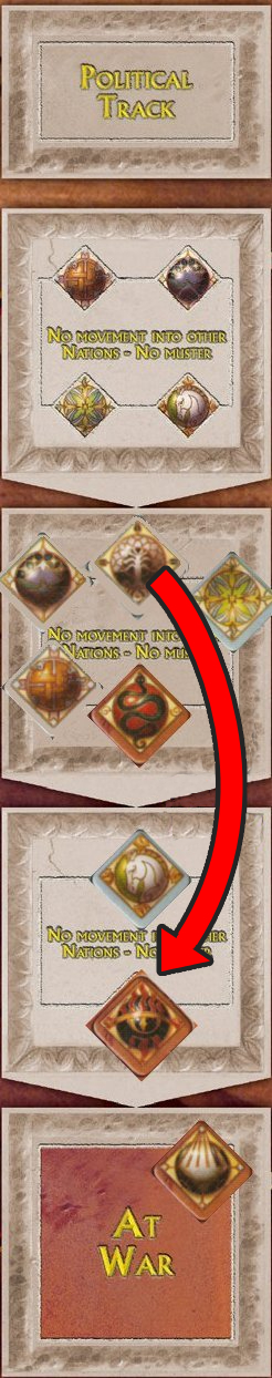 The political track for each race is advanced through invasion of their territory, a dice roll, or persuasion