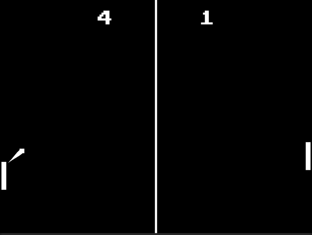 The AI could still do with some improvement. As of yet it does not correct itself for the ball’s position more accurately as the ball gets closer (just as a human player would), but this is pretty easy to fix. It also only tries to predict the ball’s final position when the ball is facing towards the right edge of the screen, it cannot predict the direction of the ball before a bounce from one of the top edges. This is trickier to fix as I have to calculate the ball’s direction vector after the bounce. It’s possible of course, but I’ll have to dig into some more physics maths.