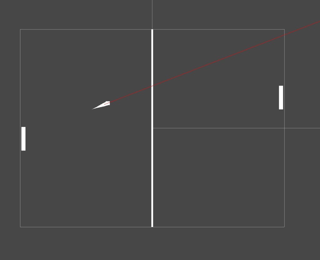 The AI predicts the path of the ball by first checking if the ball is heading towards them. It then casts a ray from the ball’s position, along the ball’s forward direction, until the ray hits a point on the right edge of the screen. It takes the Y position of the point hit, then moves towards it (at the same speed a human player could for fairness) in order to block the ball. Obviously this would produce a perfect block every time, provided that the AI could reach the blocking point in time, so I introduced a random factor of error by adding or subtracting a random amount into the Y position to try and simulate a real player not quite guessing the path of the ball correctly. This process is then repeated after a short time (also randomised within a range) for correction as the ball is continuing to travel towards the AI.